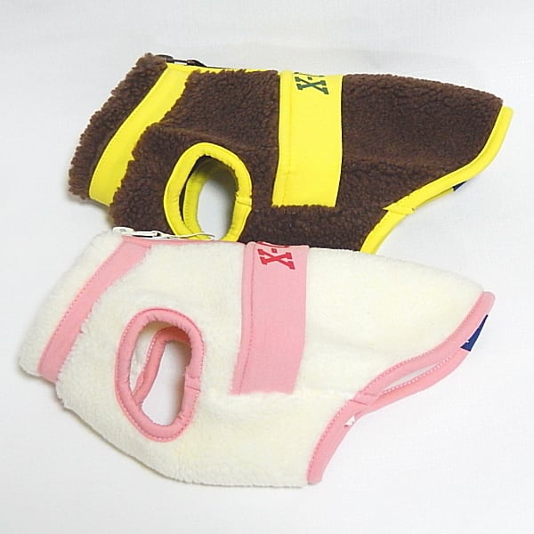 ジップアップのプルオーバー型、頭~背中が開くので脱ぎ着も楽です