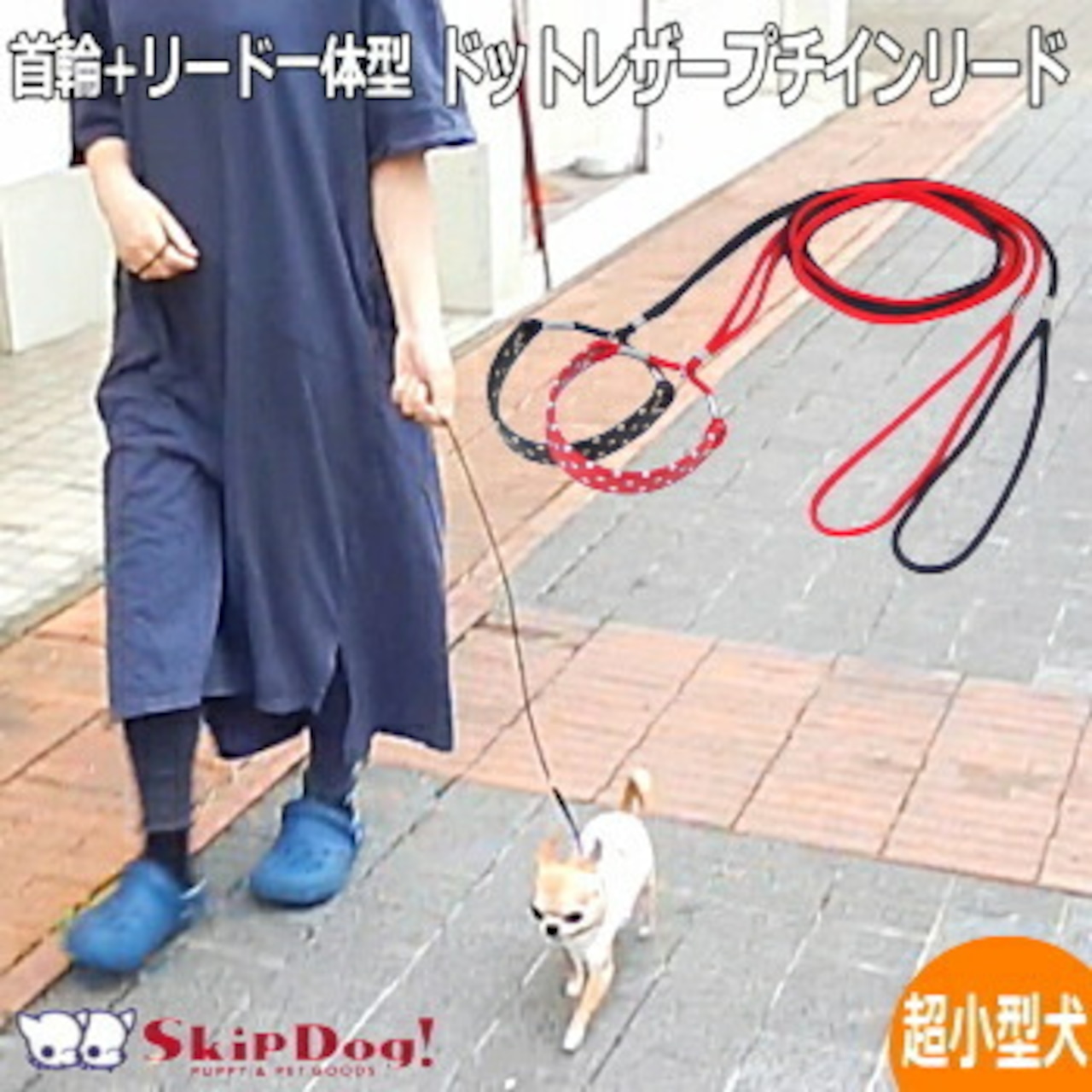 犬 首輪 リード 一体型 スキップドッグ ドット レザー プチインリード チワワ 小型犬 ショーリード 子犬 ドッグ ショー 用 紐 一体 しつけ パピー 軽い 首輪リード 細い ミニリード ショー ドッグ 小さい 軽い 軽量 トレーニング 練習 散歩 ペットグッズ 犬用品