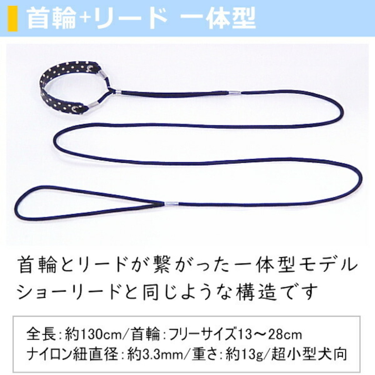超小型犬向け、首輪リード一体型、小さく軽い、かんたん装着、子犬から成犬までフリーサイズで対応